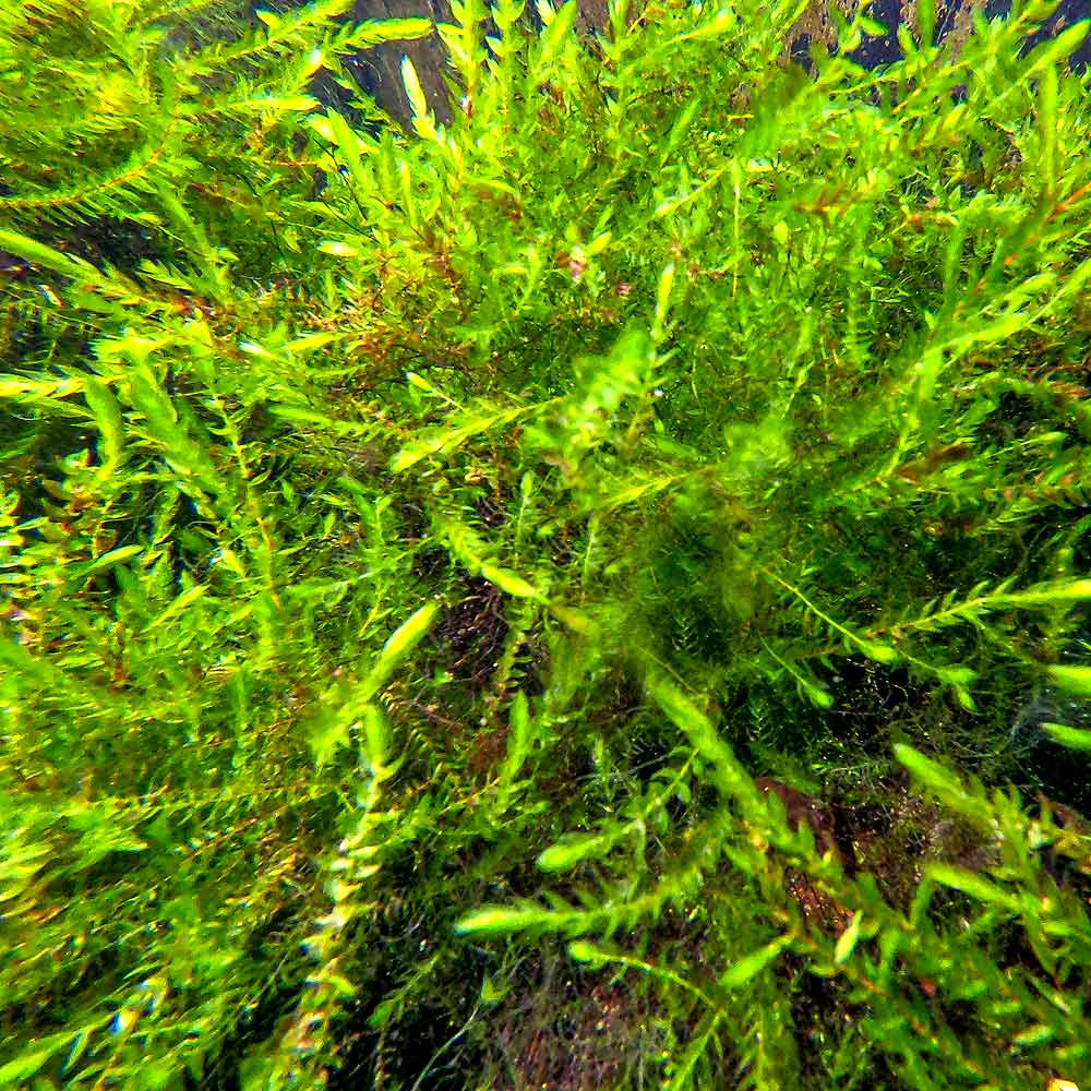 Quellmoos (Fontinalis antipyretica): Dieses Moos, ursprünglich aus dem nördlichen Europa, liebt kühles, fließendes Wasser. Es befestigt sich an Steinen und Ästen und kann unter Wasser üppige grüne Teppiche bilden. Seine feinen, verzweigten Triebe schaffen einen lebendigen Kontrast zu größeren Pflanzen