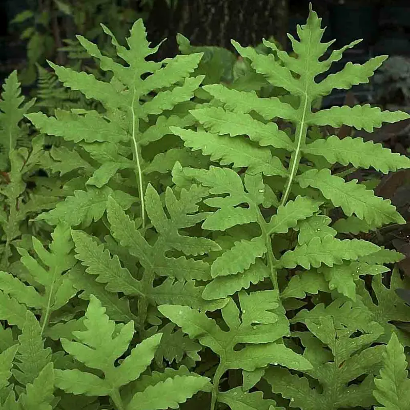 - Perlfarn: Der Perlfarn ist eine elegante Pflanze, die sich durch seine fein gefiederten Blätter und die kleinen, perlmuttfarbenen Sporen an den Blatträndern auszeichnet. Er eignet sich besonders für schattigere Teichbereiche, da er nicht nur visuell beeindruckt, sondern auch eine wichtige Struktur für den Teichrand bietet, indem er den Boden stabilisiert und ein gesundes Mikroklima fördert.