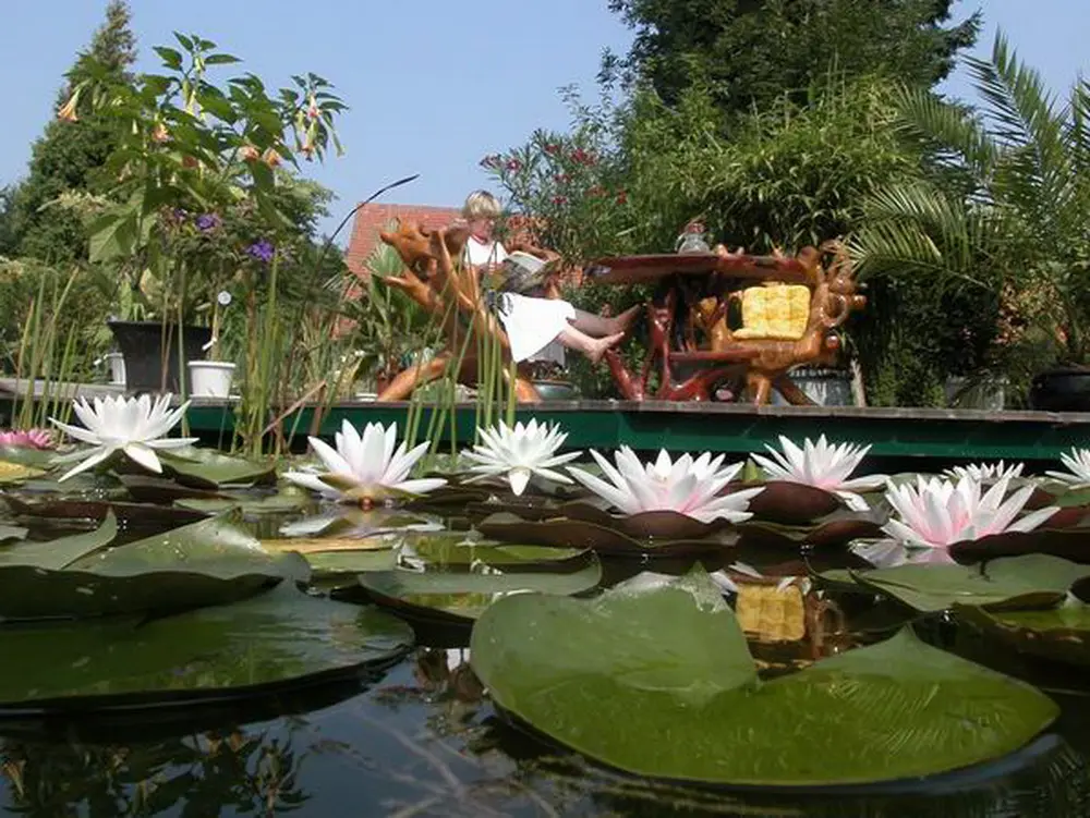 NaturaGart-Kunden profitieren von einer über 40jährigen Erfahrung: In der Zeit hat NaturaGart KnowHow und Baumaterial für über 70.000 Teichanlagen geliefert. Jedes Jahr kommen derzeit über 1.500 Teichanlagen hinzu, darunter weit über 500 Schwimmteiche. Anfang der 90er Jahre war absehbar, daß das Unternehmen bei konventioneller Werbung an Grenzen stoßen würde. So entschieden wir, einen Park als Anwendungsbeispiel für unsere Produkte zu bauen. Inzwischen sind mehrere Teiche entstanden, darunter allein drei mit einem Folieneinsatz von jeweils etwa 1000 m².