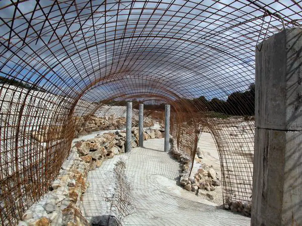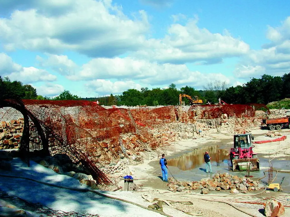 Stattdessen entstanden die Details in den Minuten, in denen die Ideen sprudelten: Vor Ort wurden Baustahlstangen zu Höhlengängen geformt - erst dann kam der Statiker, rechnete es nach und gab die Konstruktion frei. Wir wuchsen an und mit dem Bau. Wir überschritten ständig die Grenzen dessen, was wir vorher noch für möglich gehalten hatten. Mit jeder Tonne Fels, mit jedem Kubikmeter Beton wurde aus einer guten Idee eine noch bessere Realität.