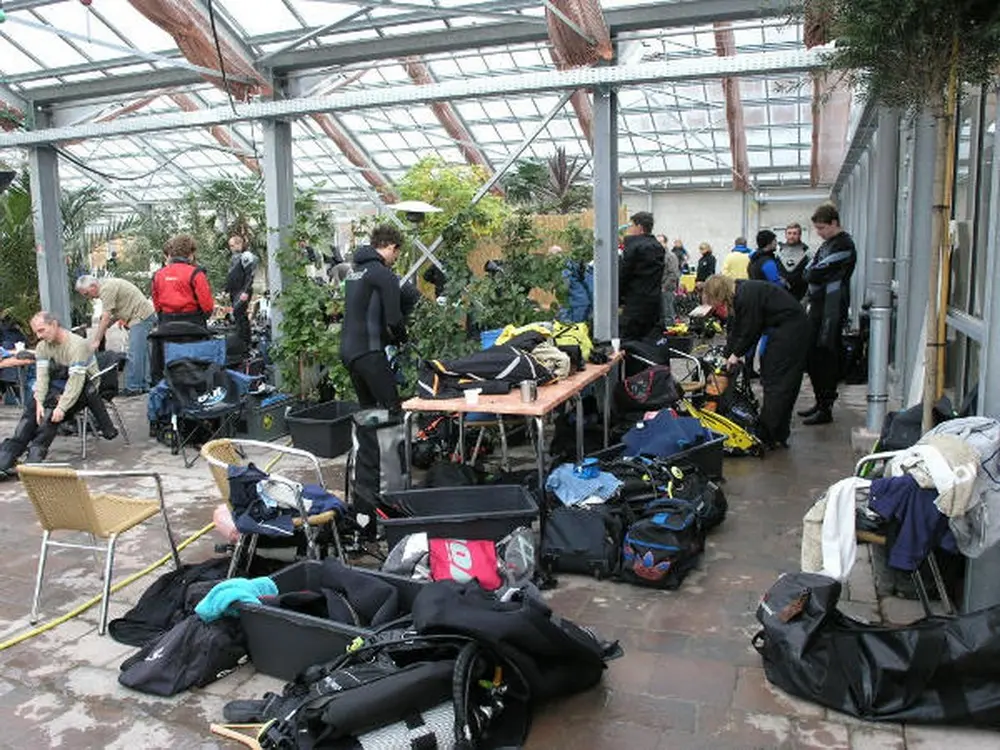 Die Tauchbasis befindet sich in der 1.500 m² großen Palmenhalle. Alles ist in einem mediterran/tropischen Freizeit-Stil gebaut. Das bis zu 11 m hohe Glashaus grenzt direkt an den See. Bei schönem Wetter lassen sich die meisten Seitenwände öffnen und das Dach schattieren.