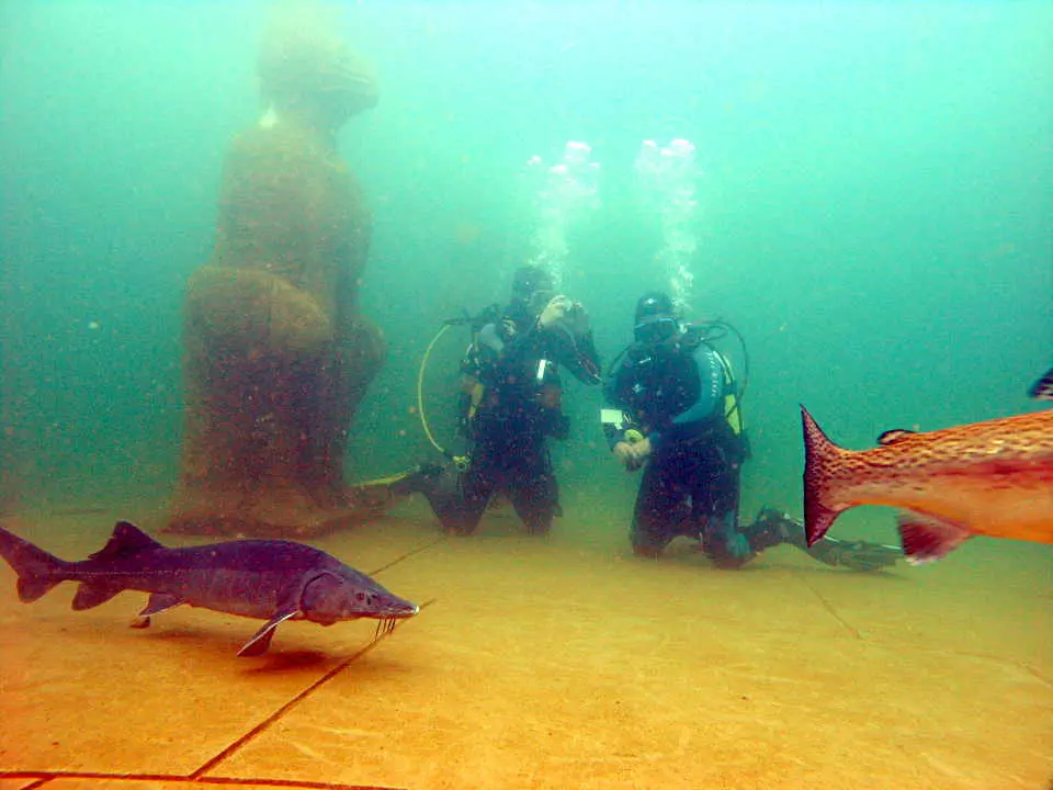 Ihr Tauchbegleiter führt Sie zu den wichtigsten Höhepunkten des Tauchparks. Sie werden an einer Fütterung der großen Störe teilnehmen, den Tempel besichtigen etc. Die längeren Höhlen können Sie aus Sicherheitsgründen nicht betauchen.