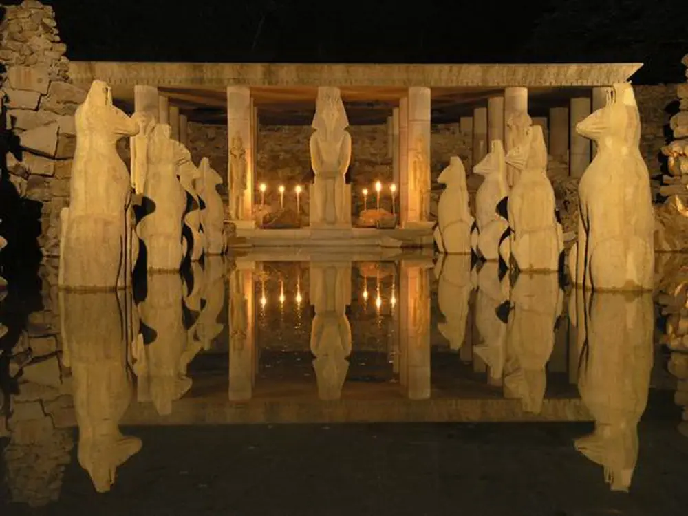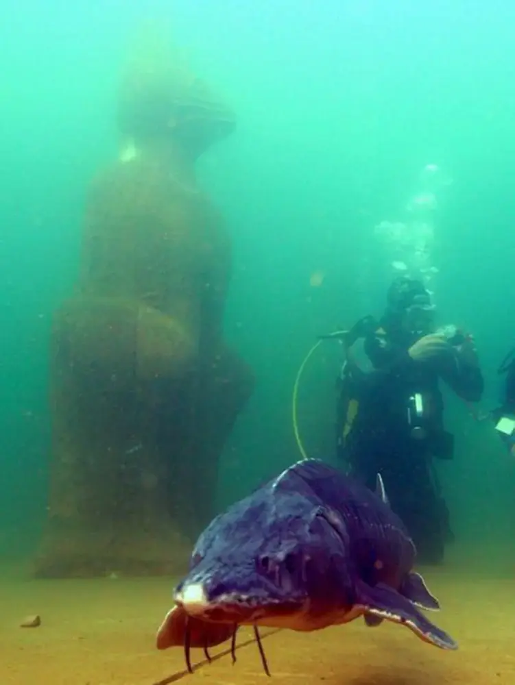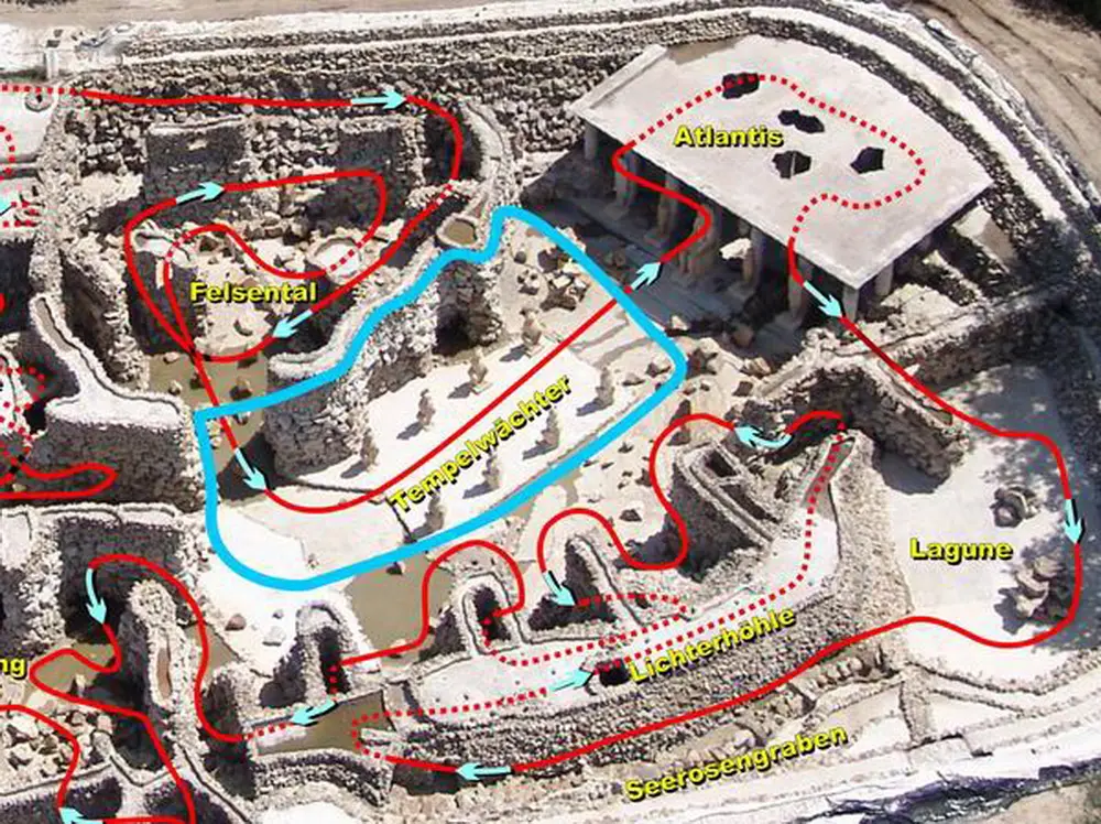 Viele Kulturen haben schon vor Jahrtausenden ihre Heiligtümer gegen Eindringlinge geschützt. Wir haben uns dafür entschieden, die Aufgabe der Tempelwächter von Katzen erledigen zu lassen, zumal sie in Ägypten ohnehin als Gottheiten verehrt wurden. Wer als Taucher zum Tempel ‘Atlantis’ schwimmen will, der kommt automatisch an dieser Katzenallee vorbei.