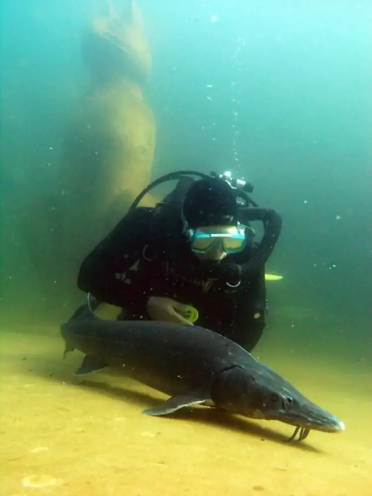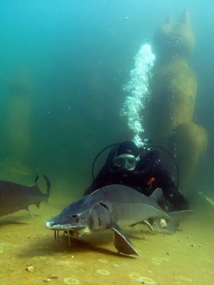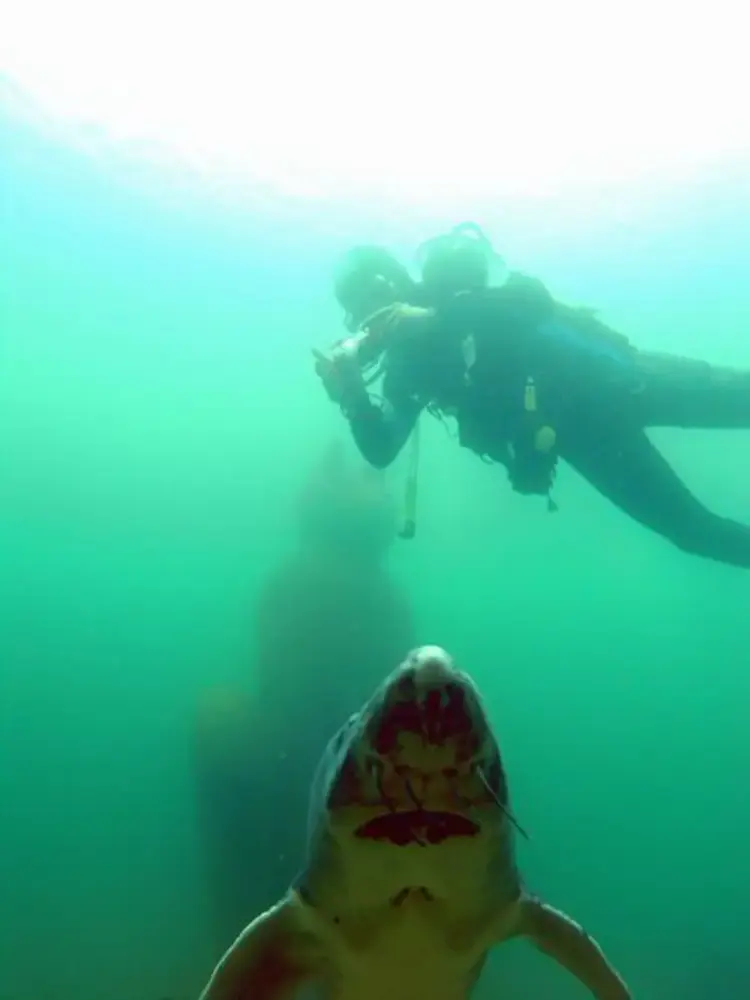 Drei Meter hoch sind diese Riesentiere. Unter den Tauchplätzen wird die östliche Seite dieses Tempelbezirkes beim ersten Tauchgang gern ‘übersehen’. Auch dort steigen die Felswände senkrecht auf und gehen dann in einen schrägen Hang über.