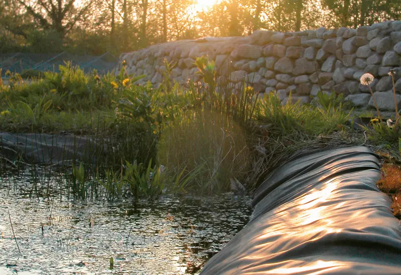 Dadurch wird verhindert, dass Wasser in angrenzende Erde gesaugt wird. Eine stabile Saugsperre wie das NaturaGart-Uferband unterstützt diese Wirkung erheblich.