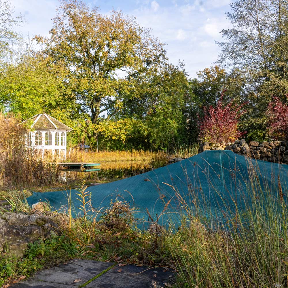Das Universalnetz besteht aus sehr feinen Maschen, das über den Teich gespannt wird. Das Netz fängt das herabfallende Laub auf und verhindert so, dass es in den Teich gelangt. Das Laubnetz ist sehr stabil und langlebig, sodass es über mehrere Jahre verwendet werden kann. Es ist in verschiedenen Größen erhältlich, um den individuellen Bedürfnissen Ihres Teiches gerecht zu werden. Meterabschnitte nach Maß sind also kein Problem. Sie können auch zwei Netze mit einer Perlonschnur verbinden.
