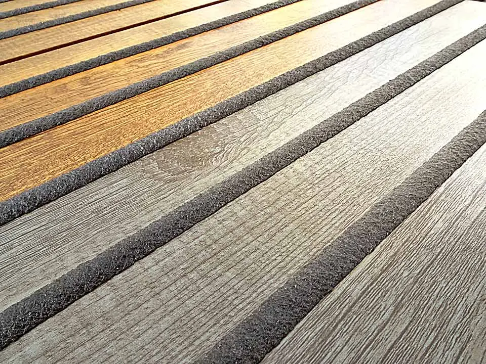 Holzdekor-Oberflächen, strukturiert, mit hochstehenden Silikonrippen.