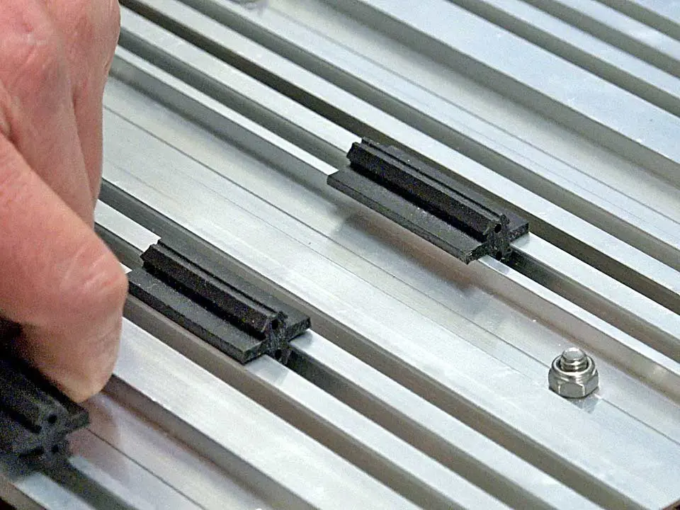 Die Montage folgt einem einfachen Schema: Unterschale aufschrauben, Silikon-Profilstücke einsetzen, Oberschale aufdrücken, Silikon-Schnüre in die oberen Kanäle und Zwischenräume einlegen - fertig. Spezielle Kenntnisse sind nicht erforderlich, handwerkliche Sorgfalt genügt. Die Profile sind als System für Bauherren gedacht, die Stege oder Brücken selbst montieren möchten.