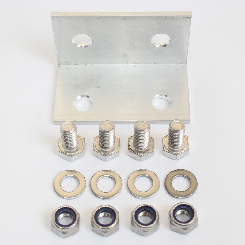 Zum Verbinden der Ober- und Unterträger mit 4 Bohrungen, 4 Edelstahl-Schrauben und selbstsichernden Muttern.