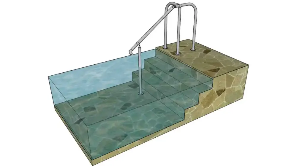 Der Handlauf passt sich jeder Treppensteigung und Wassertiefe an.