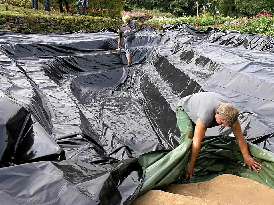 Die Folie einfach liegen zu lassen ist unkompliziert. Das Teichvlies und die Teichfolie werden einfach darüber verlegt.
