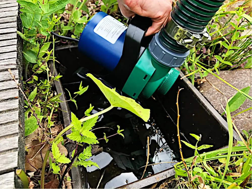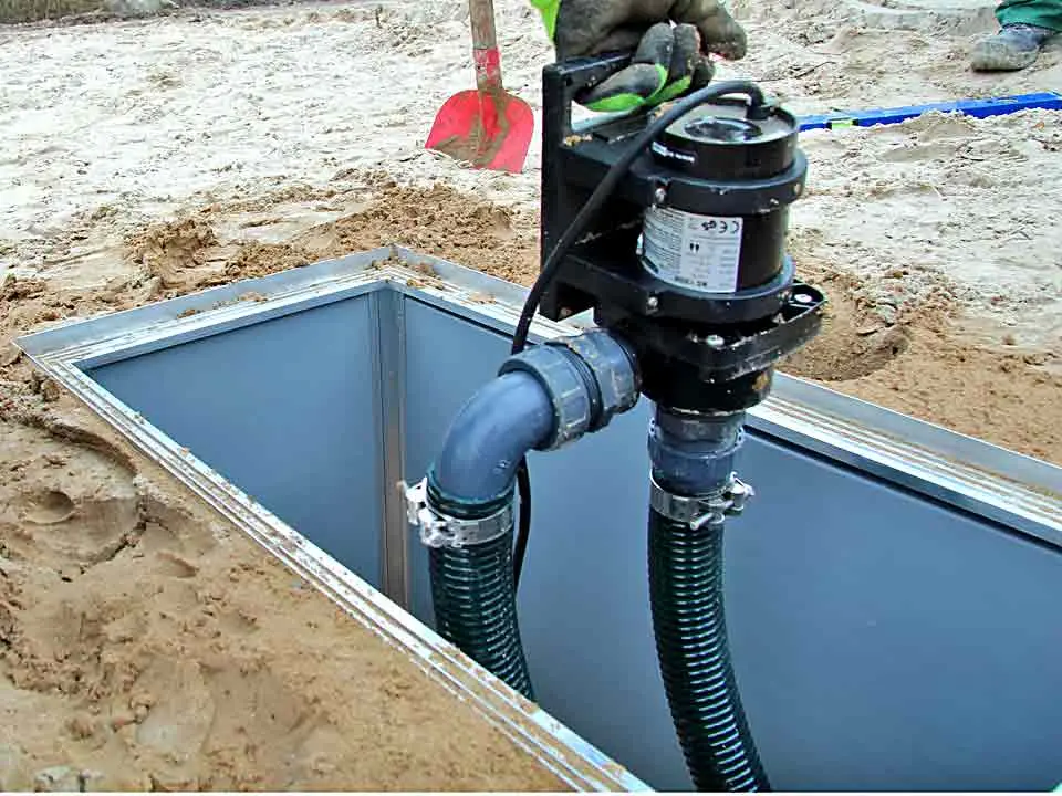 Die Pumpe saugt den Schmutz nicht direkt an. Stattdessen fließt das Wasser per Schwerkraft zum Pumpenschacht oder Vorfilter: