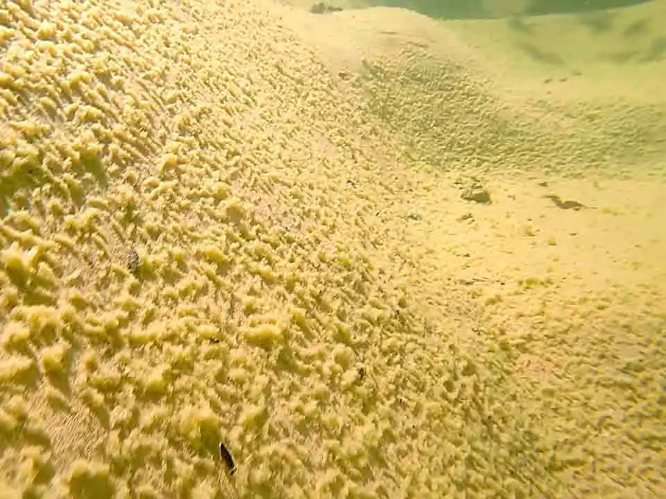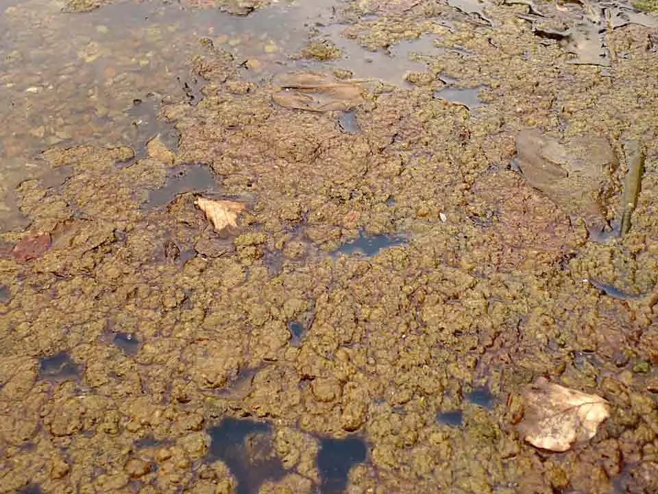 Wenn dickere Sedimentschichten faulen, bilden sich Gasblasen. Diese geben der Schicht Auftrieb. Stücke reißen ab und schwimmen an die Oberfläche - ein eindeutiges Zeichen für fortgeschrittene Sedimentbildung.