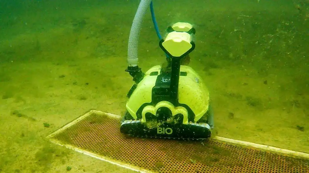 Im Pool bringt die Chlor-Chemie alles Leben um. In Schwimmteichen ohne Chlor können sich bei zu viel Dünger Algen bilden. Der Dünger sammelt sich am Boden als Sediment, das man entweder manuell entfernt oder man gibt die Arbeit diesem Teich-Roboter. Sein Vorteil: Man muss ihn nicht dauernd rausholen, um eingebaute Filter zu reinigen, sondern er pumpt das Sediment direkt in den Filtergraben.